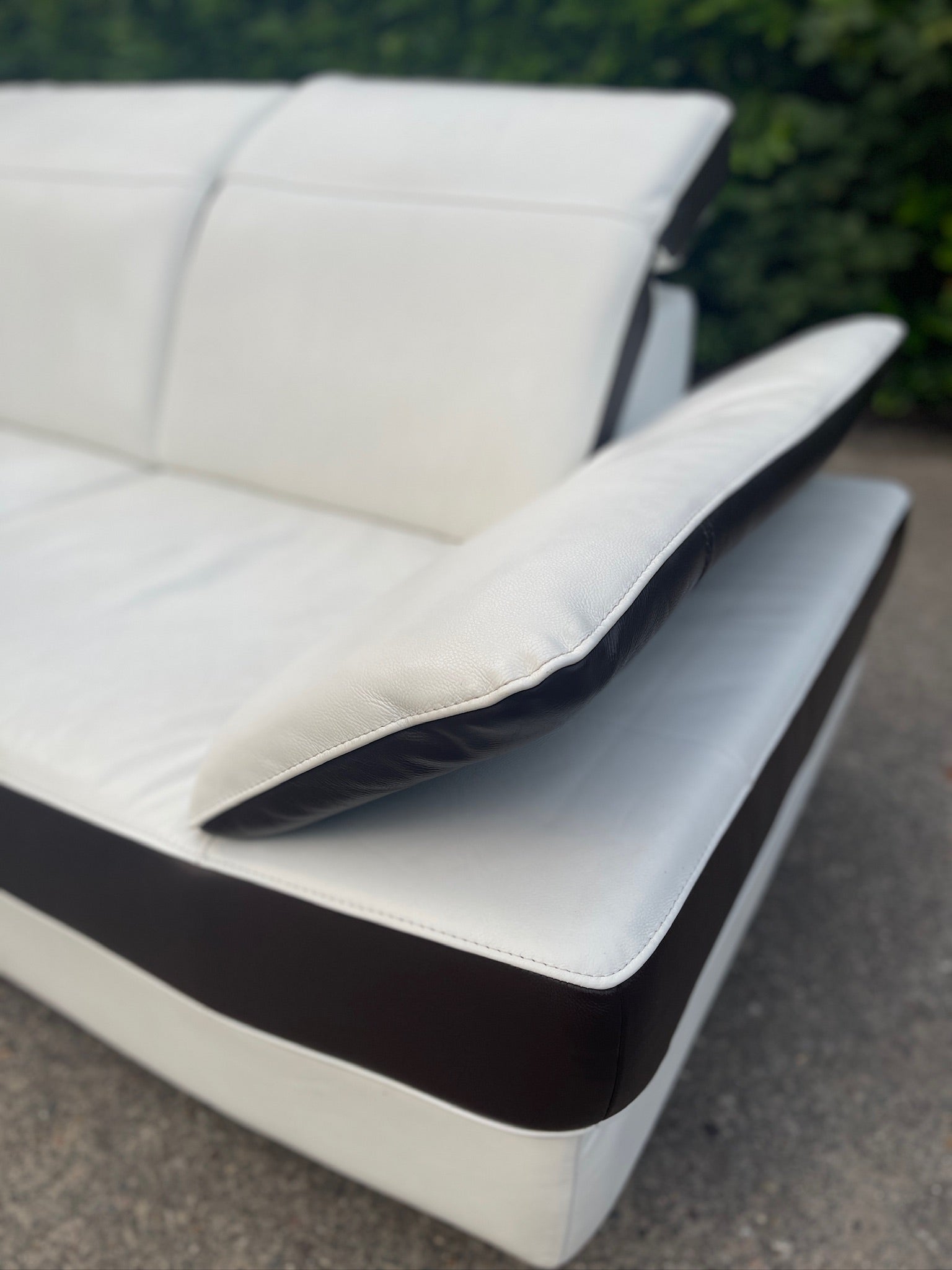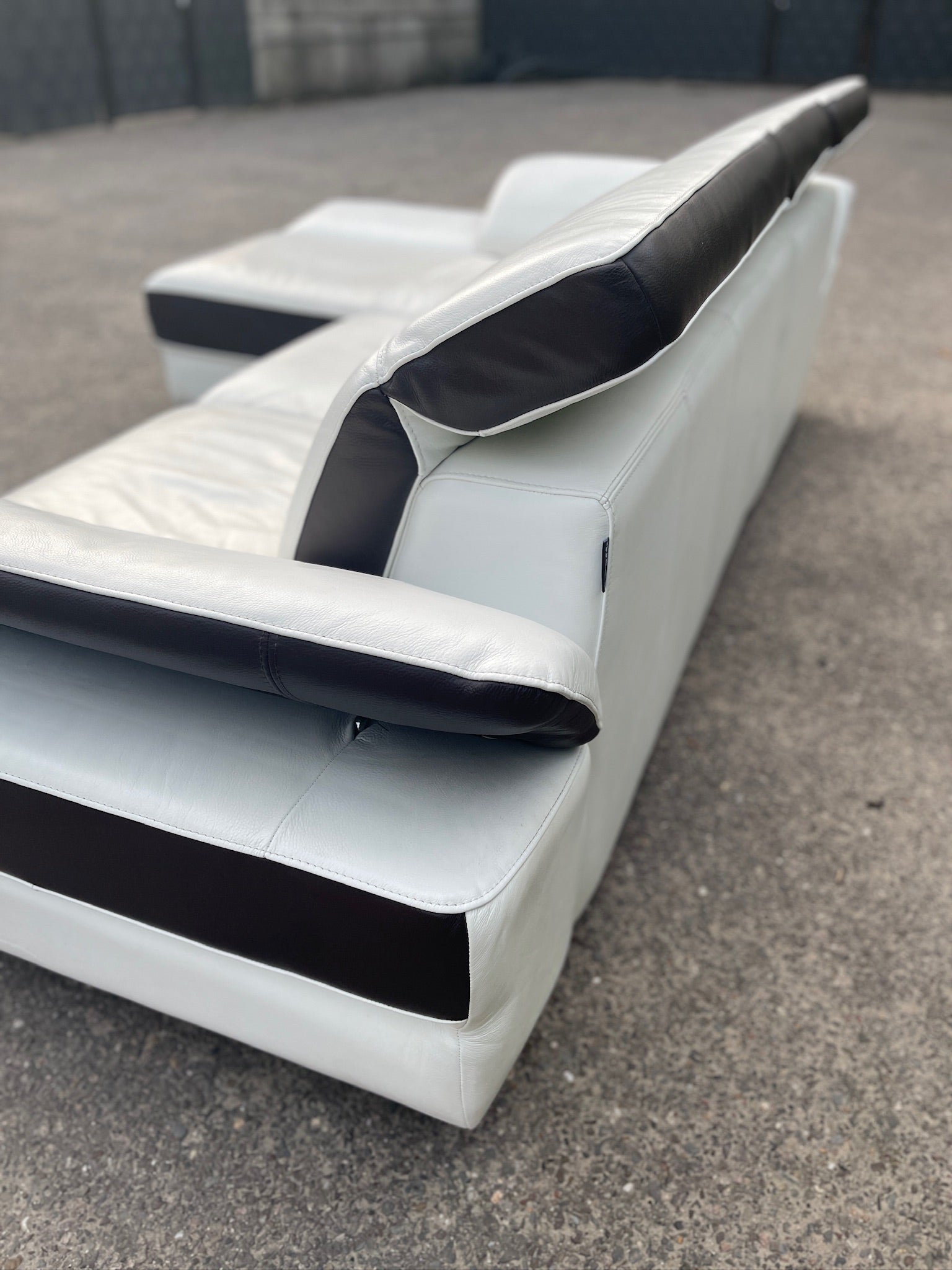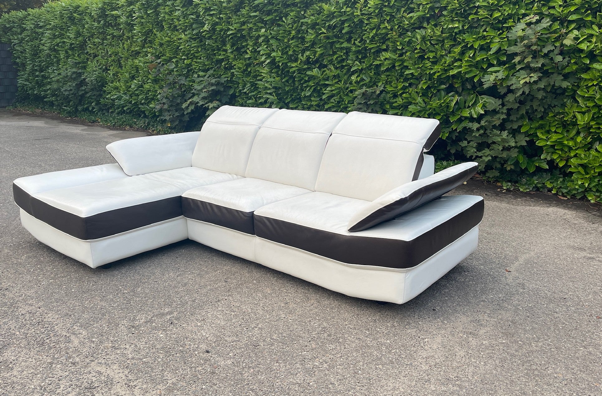 Upgrade your living space with this elegant Chateau d'Ax genuine leather corner sofa, where Italian craftsmanship meets modern comfort. Made in luxurious light leather with striking dark brown accents, this sofa effortlessly combines sophistication with functionality.