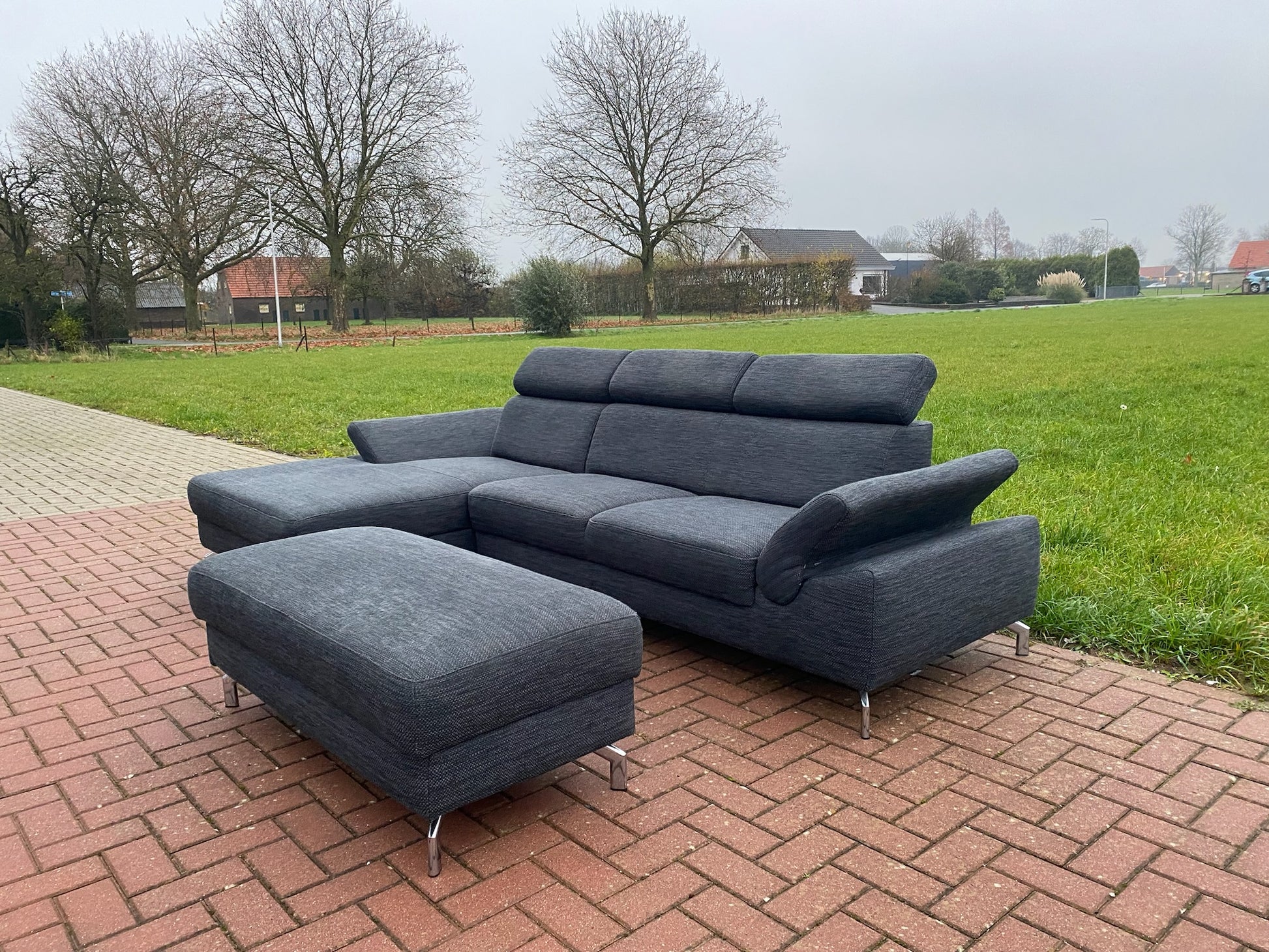 GRATIS LEVERING HEEL BENELUX + DACH Montel Grjs Stoffen Hoekbank + Hocker