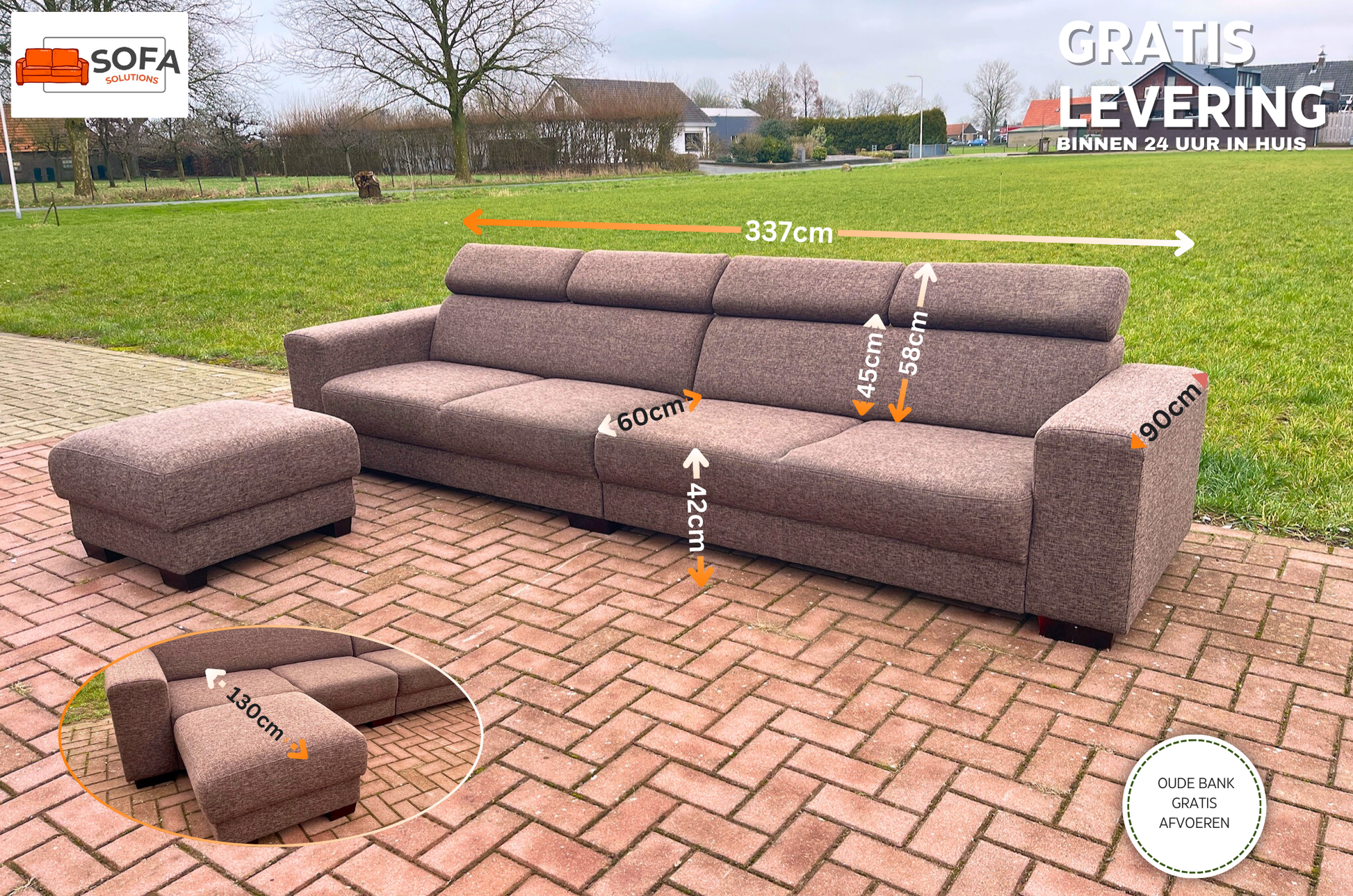 Grote Stoffen Bruin 4 -zits Bankstel + Hocker