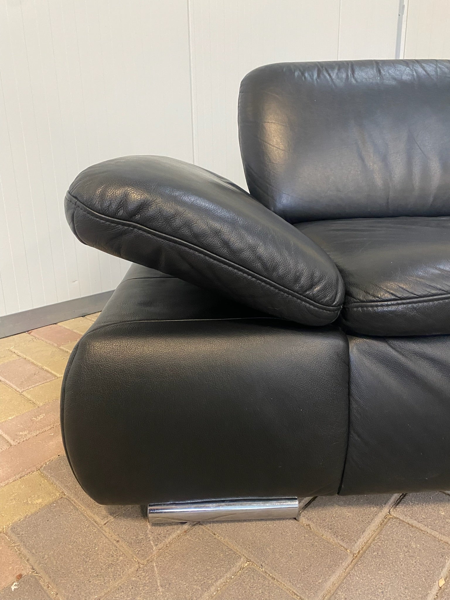 Bring home style and comfort with this sleek and spacious black leather corner sofa. Made from real leather with adjustable armrest, wide seats, and a solid base. A perfect match for modern living rooms.